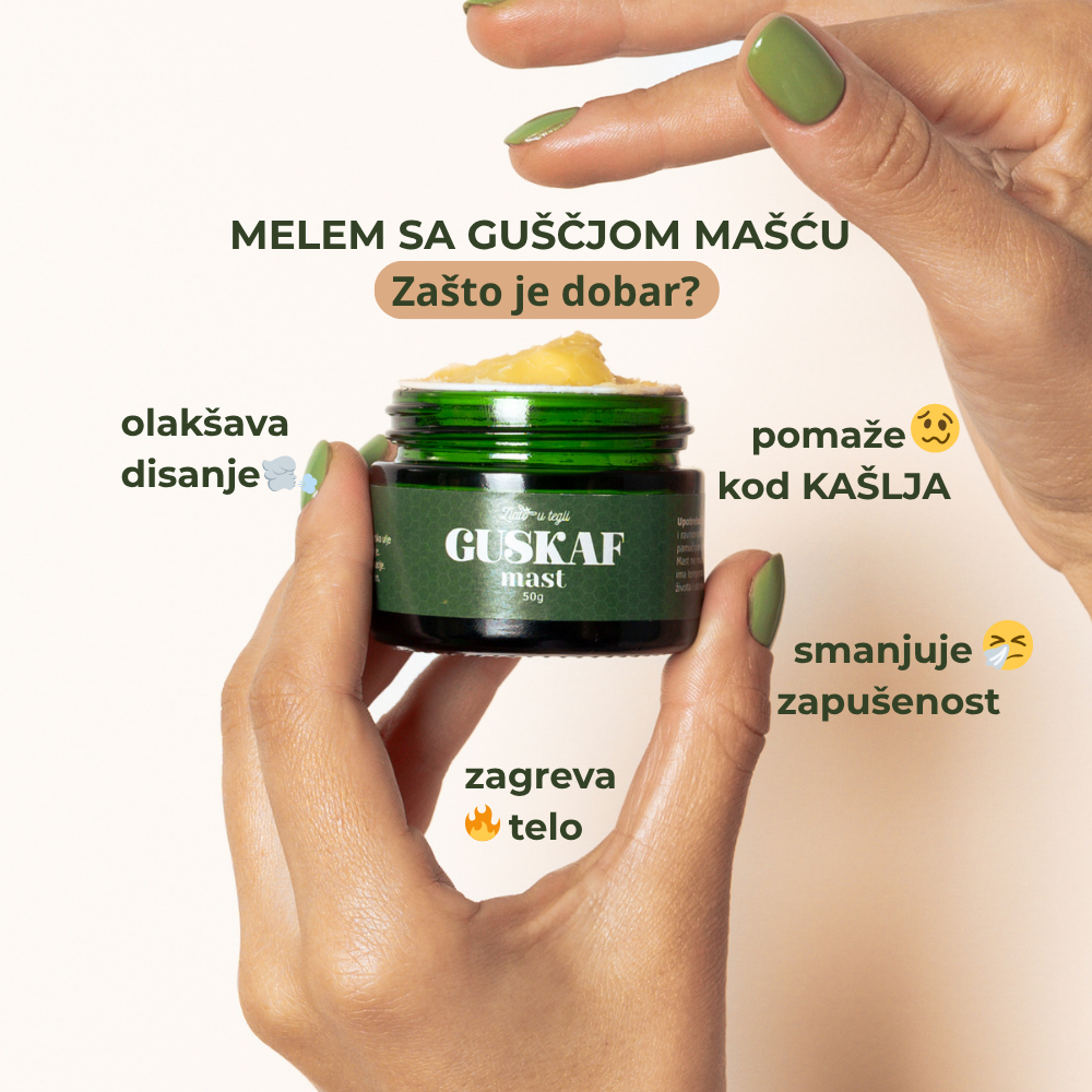 - Guščja mast – poznata po svojim lekovitim svojstvima, pomaže u zagrevanju i olakšava iskašljavanje.